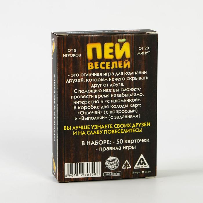 Купить игра для компании "пей веселей" 50 карт от 180 руб. с доставкой до пункта выдачи в Великом Новгороде. Интернет магазин ДекаМаркет. Оплата при получении.